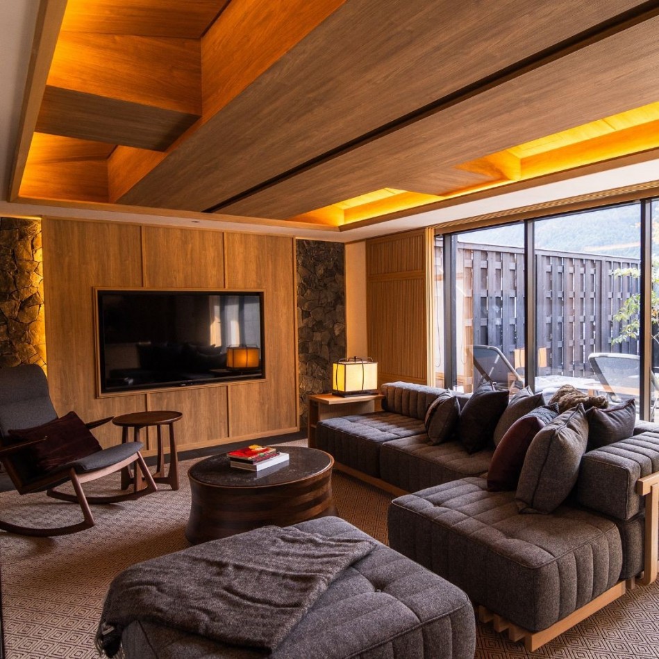 当館が立地する飛騨地域の文化・伝統から着想を得たデザインが随所に散りばめられた、和モダンでラグジュアリーな雰囲気は唯一無二。