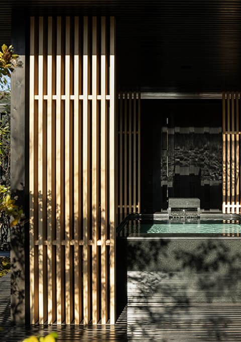 ゲストが訪れた季節毎の下呂の自然風景をより魅力的に、趣深く演出する庭園となるよう作庭しました。もっと見る