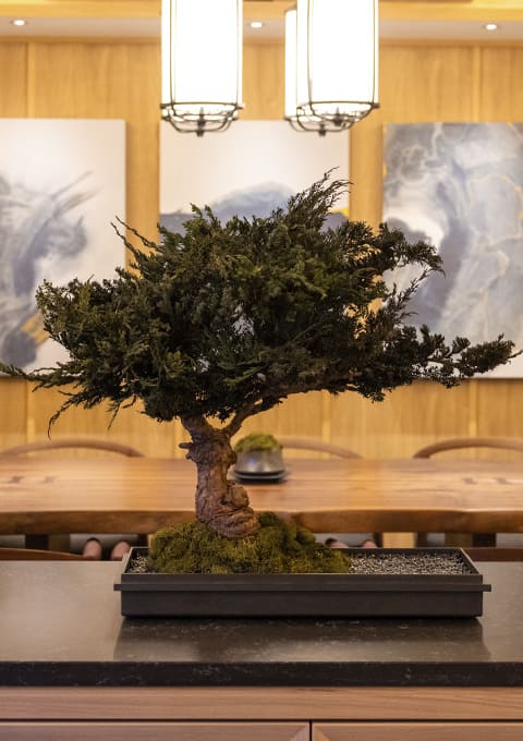 その他、飛騨地域の伝統工芸品を現代アートに昇華した作品や、盆栽や苔のドライ植栽等、こだわりのアート作品の数々が客室デザインのアクセントとなっています。